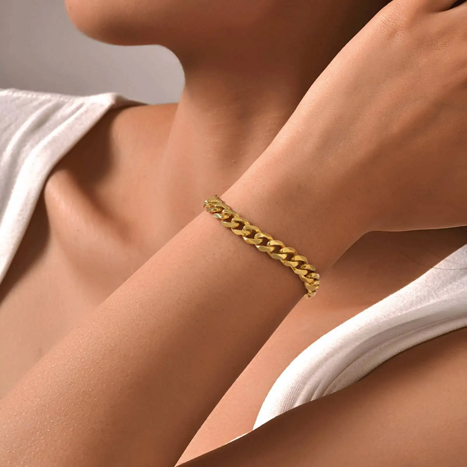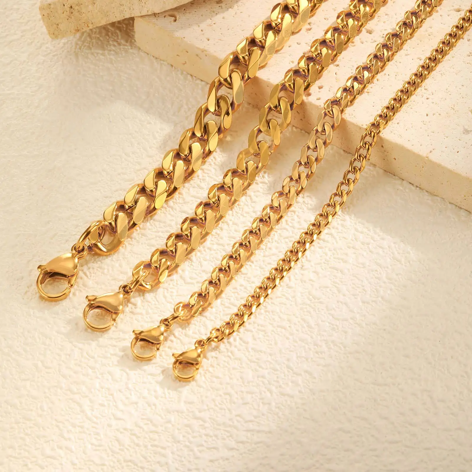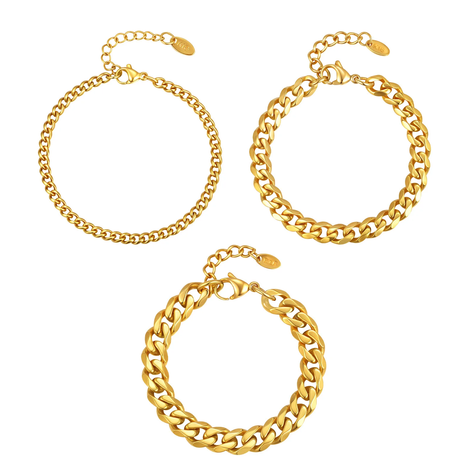New Trendy Chunky 3mm 5mm 7mm 9mm Gold Plated Stainless Steel Bracelet Cuban Chain Bracelet for Women and Men